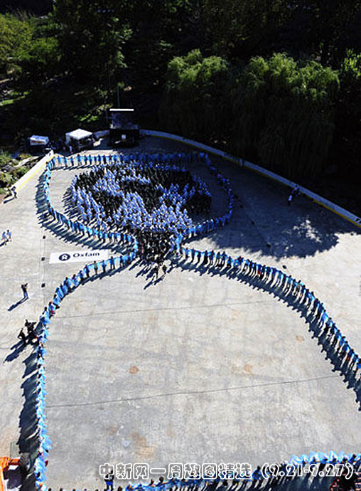 9月20日,在美國紐約中央公園,志愿者們聚集在一起用身體組成地球困在沙漏里,組織者希望通過這項活動喚起人們對全球氣候變化的關(guān)注。圖片來源:中國新聞網(wǎng)