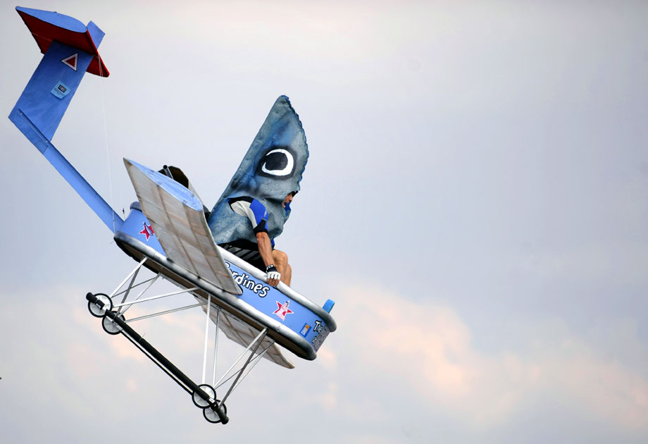 9月27日,法國馬賽趣味飛行器大賽舉行。比賽規(guī)則簡單,誰能在落水之前飛得更遠(yuǎn)誰就是冠軍,但參賽選手絞盡腦汁,把自己的飛行器扮成各種古怪摸樣。圖片來源:中國新聞網(wǎng)