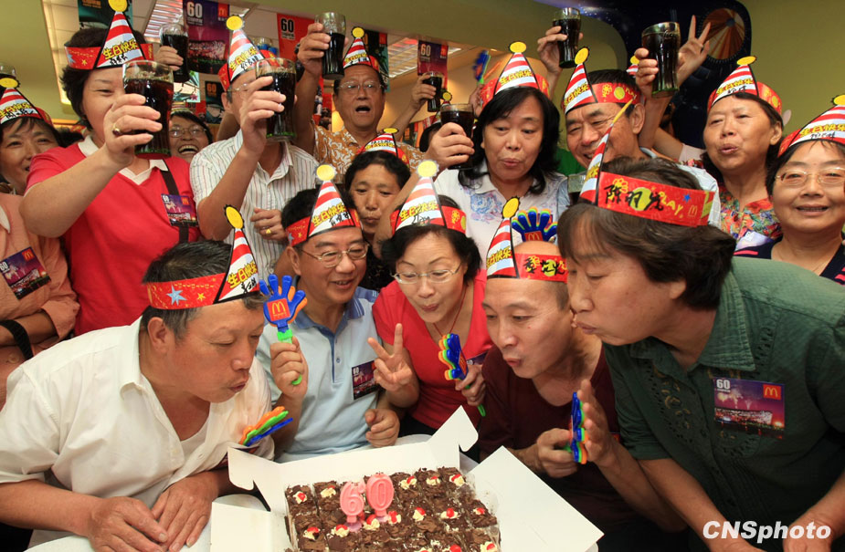 9月23日,上海六十名“共和國同齡人”舉行集體生日派對共賀新中國生日。 中新社發(fā) 湯彥俊 攝