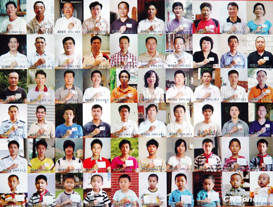 9月27日,“見證祖國60歲 我的名字叫國慶”攝影個展在福州舉行。為了紀念中華人民共和國成立60周年,福建職業(yè)攝影師阮曉榕歷時四個多月,歷經(jīng)8000余公里行程,尋訪了近百人,最終成功拍攝了從1949年到2008年10月1日出生、名字叫“國慶”的60個人。 中新社發(fā) 張 斌 攝