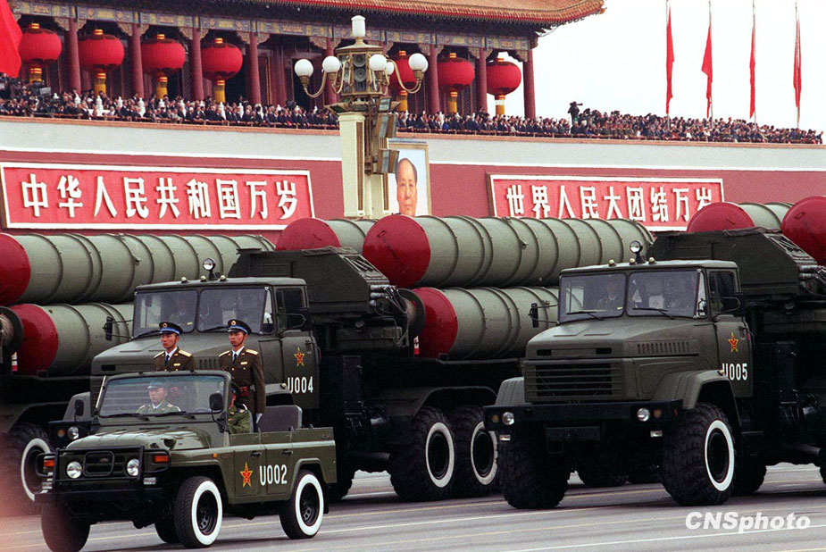圖為空軍的中遠程地對空導(dǎo)彈出現(xiàn)在1999年國慶閱兵行列中。中新社發(fā) 滿會喬 攝
