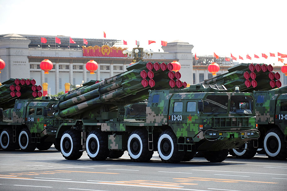 2009年10月1日,中華人民共和國成立60周年慶祝大會在北京天安門廣場舉行。圖為遠(yuǎn)程火箭炮方隊(duì)。