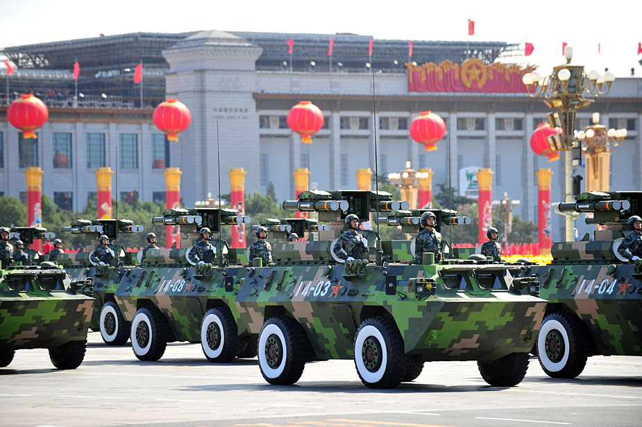 2009年10月1日,中華人民共和國(guó)成立60周年慶祝大會(huì)在北京天安門廣場(chǎng)舉行。圖為反坦克導(dǎo)彈方隊(duì)。