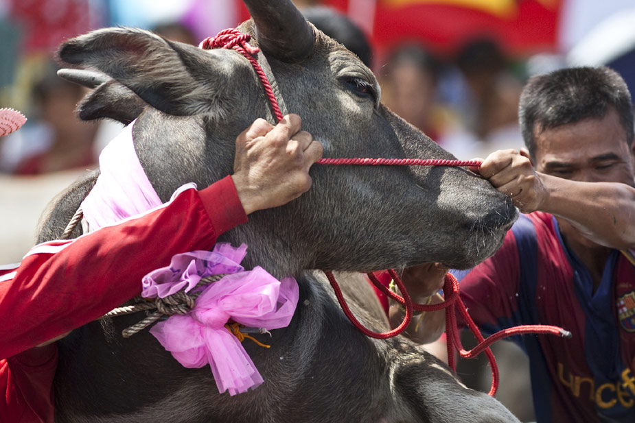 10月3日,泰國一年一度的騎水牛大賽在春武里舉行。