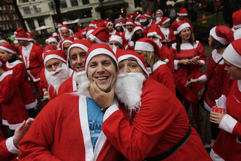 10月6日,英國倫敦市中心100多位圣誕老人為籌集乳腺癌護(hù)理善款而參加歡樂跑活動(dòng)。圖片來源:中國新聞網(wǎng)