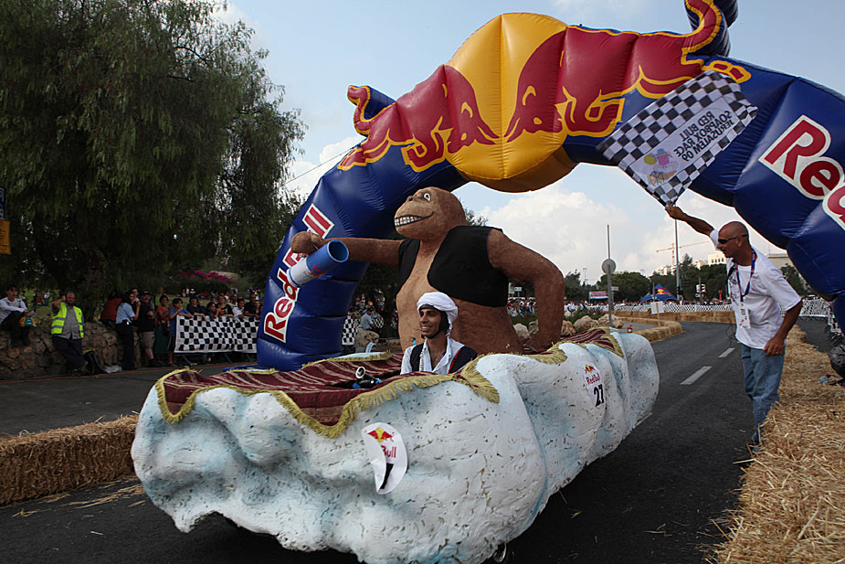 50輛“肥皂盒車”10月7日參加了耶路撒冷舉行的“肥皂盒車”趣味競賽。賽道設置在市中心一條大街的一段斜坡上,比賽者駕駛各種千奇百怪的賽車從起點一路滑下。圖片來源:中國新聞網(wǎng)