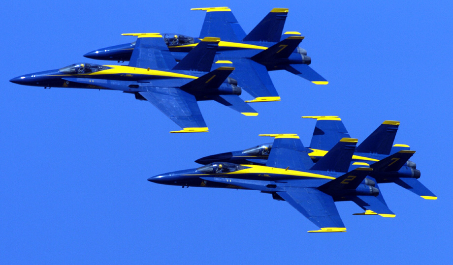 2009年10月8日,美軍飛機(jī)在舊金山灣上空進(jìn)行飛行演練。一年一度的舊金山艦隊(duì)周將于10月10日開幕,屆時(shí)會有船艦游行和飛行表演等活動。 來源:中國新聞網(wǎng)