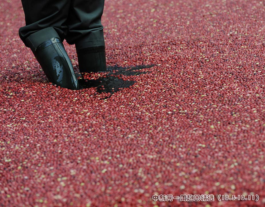 近日,美國(guó)果汁業(yè)巨頭在洛克菲勒大廈門(mén)前搭建起一個(gè)約140平方米的池塘,并在池塘里放入了近千公斤的曼越莓鮮果,以慶祝該公司曼越莓的豐收。來(lái)源:中國(guó)新聞網(wǎng)