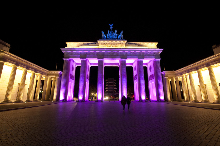 13日晚在德國(guó)首都柏林,勃蘭登堡門在“燈節(jié)”的提前預(yù)演中被五彩燈飾照亮。圖片來源:中國(guó)新聞網(wǎng)