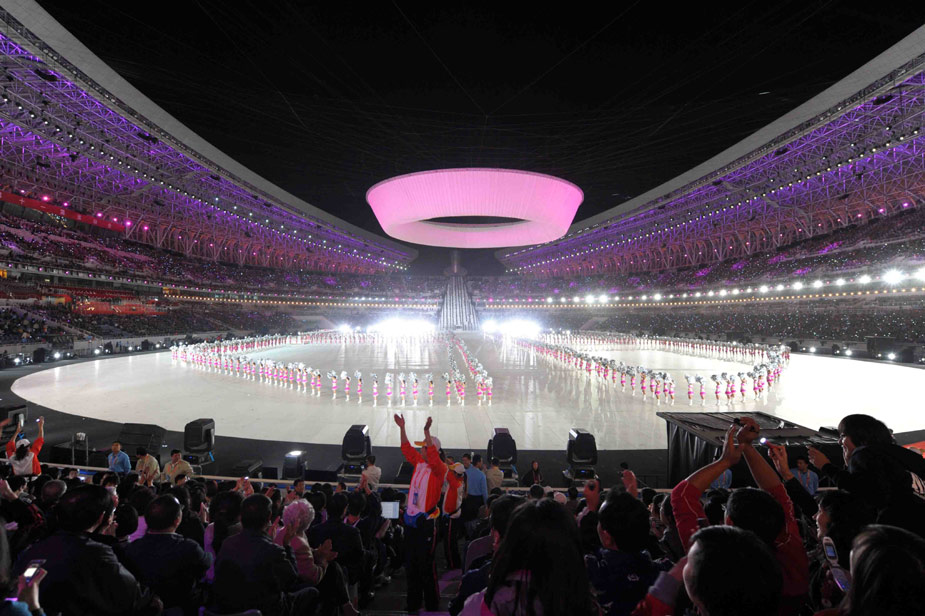 十月十六日晚,中華人民共和國(guó)第十一屆運(yùn)動(dòng)會(huì)在山東濟(jì)南奧體中心隆重開幕。圖片來(lái)源:中國(guó)新聞網(wǎng)