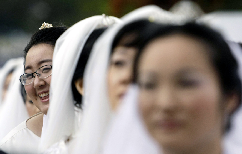 周三(10月14日),來自世界各地約4萬人在韓國漢城以南的日月潭大學參加集體婚禮,并成為韓國10年來規(guī)模最大的集體婚禮。圖片來源:中國新聞網