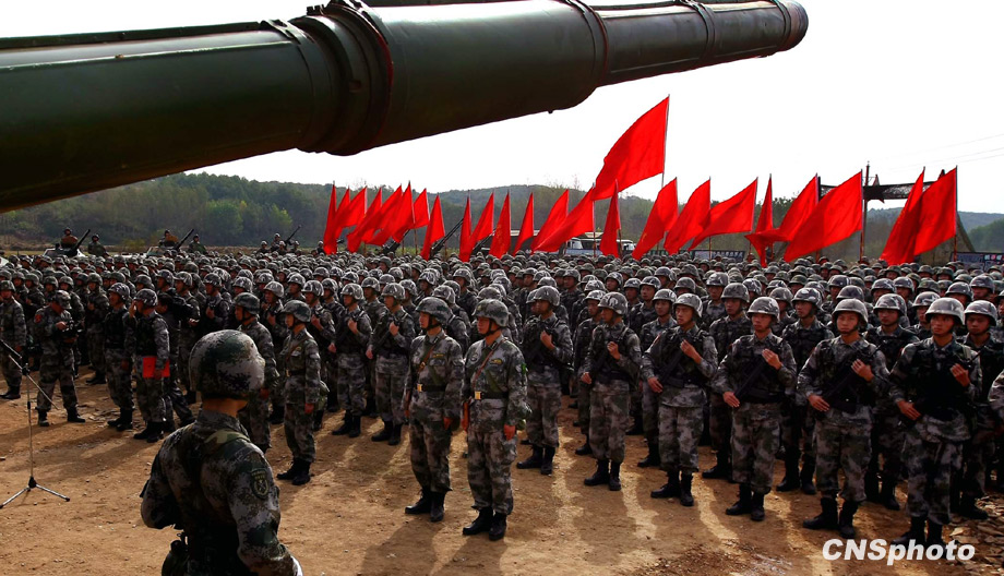 解放軍濟(jì)南軍區(qū)“前鋒-2009A”軍事演習(xí),將于10月21日在某合同戰(zhàn)術(shù)訓(xùn)練基地舉行,參加演習(xí)部隊(duì)10月20日組織戰(zhàn)前動員。這次演習(xí)主要是由兵力兵器數(shù)量規(guī)模向信息火力效能聚優(yōu)轉(zhuǎn)變、指揮的重心由主攻方向上的重點(diǎn)突破向作戰(zhàn)關(guān)節(jié)要害的體系毀癱轉(zhuǎn)變、火力的運(yùn)用由概略粗放決策向科學(xué)精細(xì)籌劃轉(zhuǎn)變、協(xié)同的重點(diǎn)由地面步坦行動向陸空火力協(xié)調(diào)轉(zhuǎn)變、行動的控制由時(shí)間位置推進(jìn)量向效果態(tài)勢達(dá)成度轉(zhuǎn)變、作戰(zhàn)的目的由殲敵奪地向控要制權(quán)轉(zhuǎn)變。 中新社發(fā) 宋吉河 攝