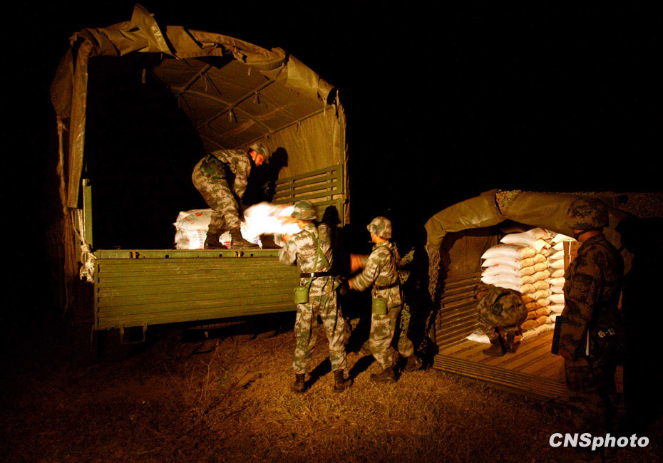 當(dāng)晚國(guó)防大學(xué)防務(wù)學(xué)院、空軍指揮學(xué)院的外軍學(xué)員,以及英國(guó)、以色列、土耳其、巴基斯坦等國(guó)軍事觀察員親臨現(xiàn)場(chǎng)觀摩了后勤保障戰(zhàn)斗準(zhǔn)備、自行榴彈炮占領(lǐng)陣地、裝甲車輛“摸黑”開進(jìn)等戰(zhàn)斗要素。圖為后勤部隊(duì)軍糧夜間運(yùn)送。中新社發(fā) 宋吉河 攝