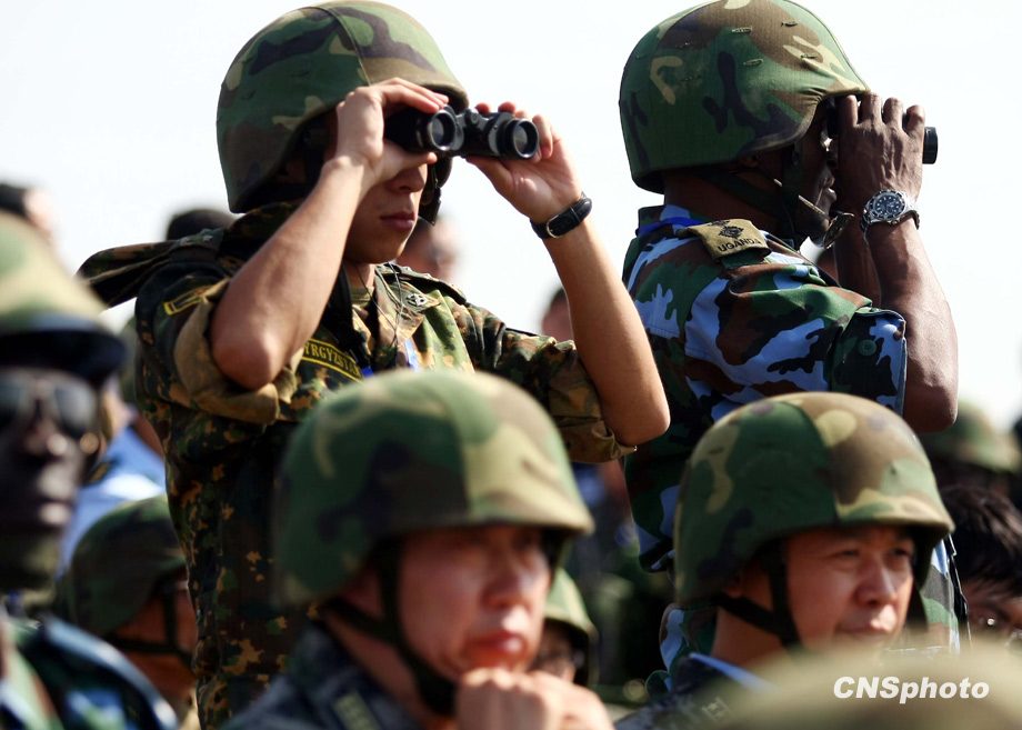 解放軍“前鋒-二00九A”演習(xí),二十二日在濟南軍區(qū)某合同戰(zhàn)術(shù)訓(xùn)練基地進行陸空聯(lián)合火力打擊實兵實彈演練后落幕。參演的陸空兩個軍種配合默契,體現(xiàn)了解放軍推進聯(lián)合訓(xùn)練的成果。 這次陸空軍聯(lián)合火力打擊實兵實彈演習(xí)將持續(xù)20余個小時,國防大學(xué)防務(wù)學(xué)院、空軍指揮學(xué)院的外軍學(xué)員,以及英國、以色列、土耳其、巴基斯坦等國軍事觀察員親臨現(xiàn)場觀摩。