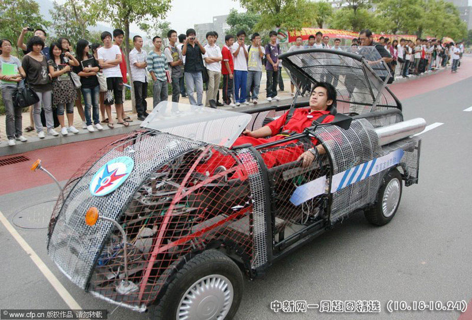 2009年10月20日下午,廈門理工學(xué)院舉行的“首屆汽車設(shè)計(jì)大賽”動(dòng)態(tài)賽,參賽的11支隊(duì)伍顛覆了大家對(duì)傳統(tǒng)汽車的想象,“躺著開(kāi)的概念車”等各種“奇思妙想”一應(yīng)俱全。莫風(fēng) 攝>>點(diǎn)擊觀看詳細(xì)內(nèi)容