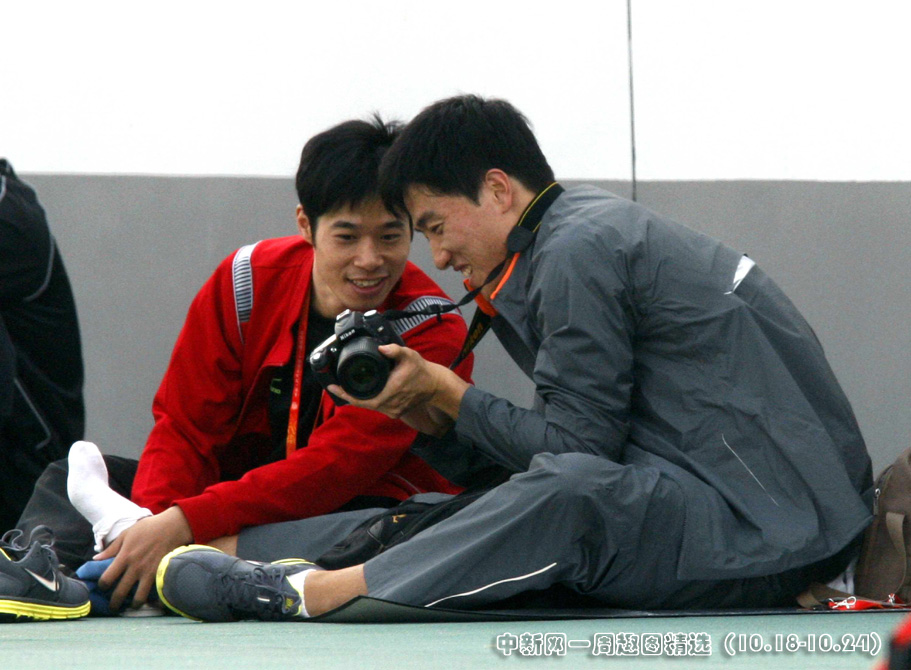 10月22日下午,“飛人”劉翔亮相濟南奧體中心田徑訓(xùn)練場,訓(xùn)練間隙手拿相機,客串?dāng)z影記者。中新社發(fā) 張宇 攝。>>點擊觀看詳細(xì)內(nèi)容