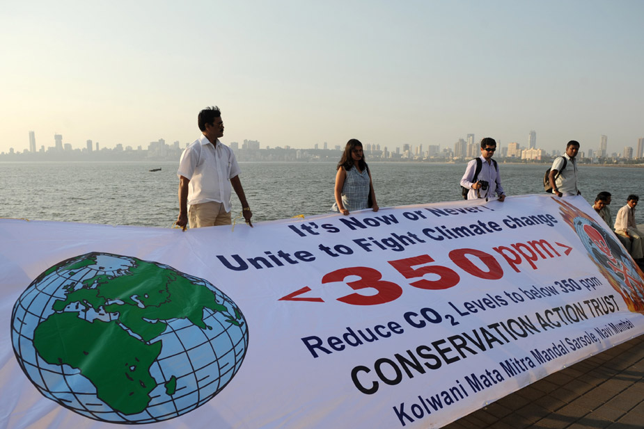 2009年10月24日,當(dāng)日是350全球應(yīng)對(duì)氣候變化行動(dòng)日,世界各地的民眾紛紛用自己的方式來表示對(duì)全球氣候變化的關(guān)注和擔(dān)憂。圖為印度民眾組織的活動(dòng)。
