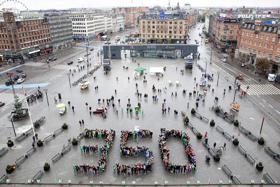 2009年10月24日,當(dāng)日是350全球應(yīng)對(duì)氣候變化行動(dòng)日,世界各地的民眾紛紛用自己的方式來表示對(duì)全球氣候變化的關(guān)注和擔(dān)憂。圖為丹麥民眾組織的活動(dòng)。