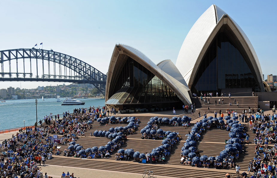 2009年10月24日,當(dāng)日是350全球應(yīng)對氣候變化行動(dòng)日,世界各地的民眾紛紛用自己的方式來表示對全球氣候變化的關(guān)注和擔(dān)憂。圖為澳大利亞民眾組織活動(dòng)。