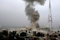 巴格達市中心25日發(fā)生兩起汽車炸彈爆炸事件,爆炸發(fā)生在早晨上班高峰時間,造成嚴重傷亡,死亡人數(shù)不斷攀升,已超過百人。來源:中國新聞網(wǎng)