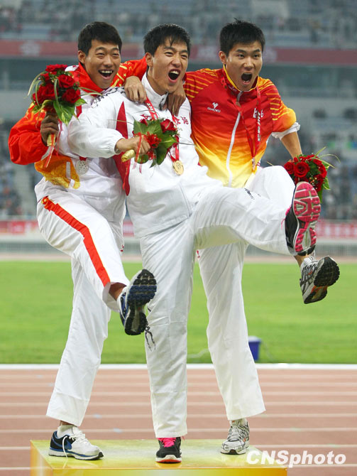 10月25日,在全運會田徑男子110米欄決賽中,上海代表團選手、“中國飛人”劉翔以13秒34的成績勇奪冠軍,同時也成就了其全運會該項目三連冠的偉業(yè)。