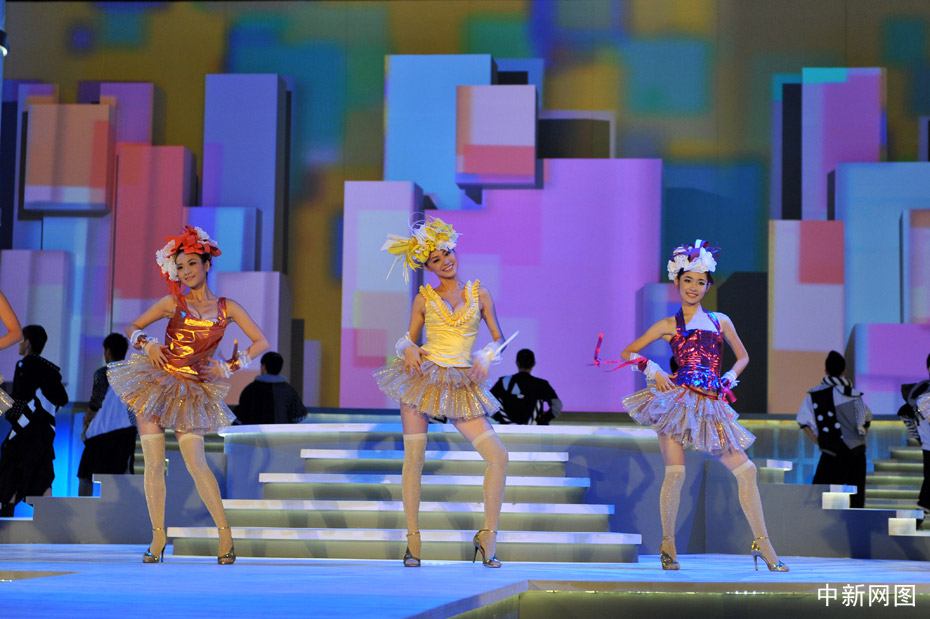 10月31日晚,“2009中華小姐環(huán)球大賽”總決賽上,12名入圍總決賽的佳麗身著迷你裙大秀性感爵士舞。中新網(wǎng)記者 金碩 攝