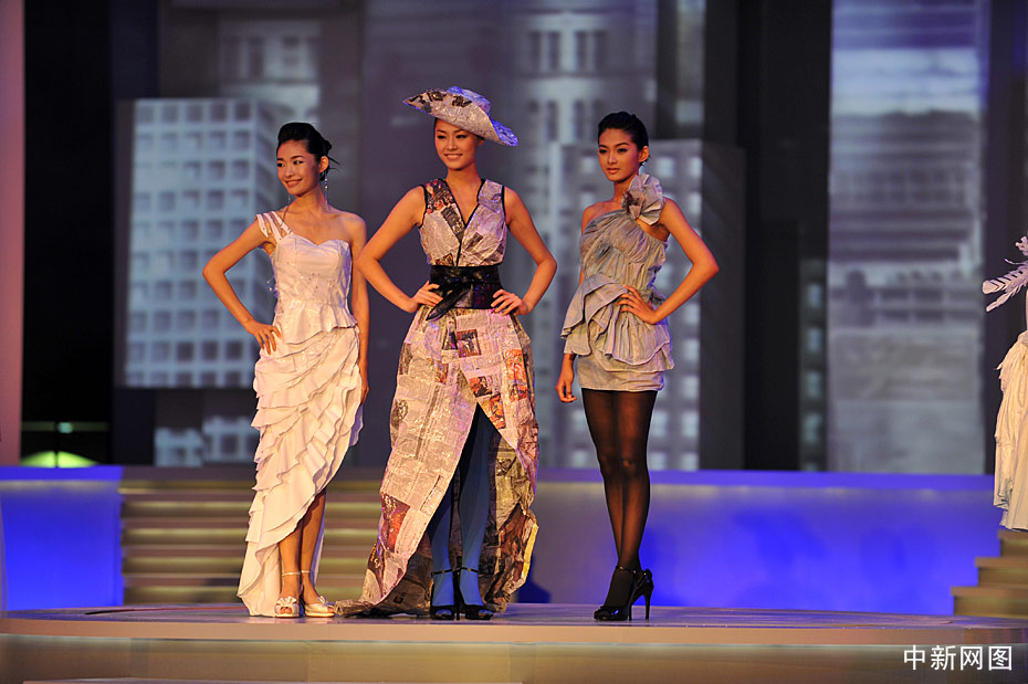 10月31日晚,“2009中華小姐環(huán)球大賽”總決賽上,12名入圍總決賽的佳麗身著各式服裝展現(xiàn)曼妙身姿,此外大賽還設(shè)計(jì)了一套“廢品服裝”呼吁環(huán)境保護(hù)。中新網(wǎng)記者 金碩 攝