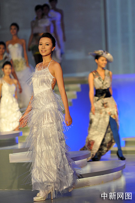 10月31日晚,“2009中華小姐環(huán)球大賽”總決賽上,12名入圍總決賽的佳麗身著各式服裝展現(xiàn)曼妙身姿,此外大賽還設(shè)計了一套“廢品服裝”呼吁環(huán)境保護。中新網(wǎng)記者 金碩 攝