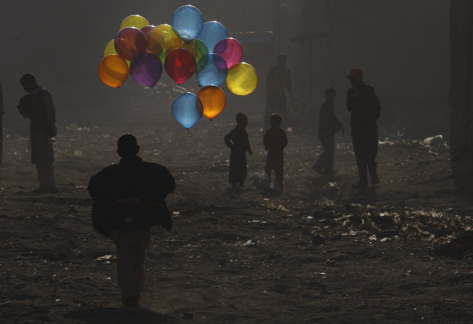 周日(25日),飽受戰(zhàn)火的阿富汗,一個男孩在首都喀布爾街頭手拿五彩氣球。 來源:中國新聞網(wǎng)