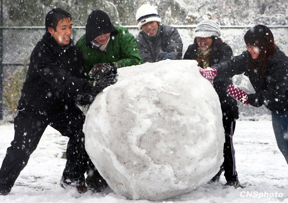 11月1日農(nóng)歷九月十五,尚未立冬的北京受強(qiáng)冷空氣影響大雪紛飛銀裝素裹,幾名來自赤道印尼的年輕人滾起碩大的雪球享受罕見的雪中樂趣。受強(qiáng)冷空氣影響,北京從昨天夜間開始出現(xiàn)小雨,今天凌晨轉(zhuǎn)為大雪,午后降雪逐漸減弱。根據(jù)過去50年的數(shù)據(jù)統(tǒng)計,北京地區(qū)常年出現(xiàn)初雪的時間在每年的11月29日左右,今年的初雪時間提前了整整一個月。中新社發(fā) 任晨鳴 攝
