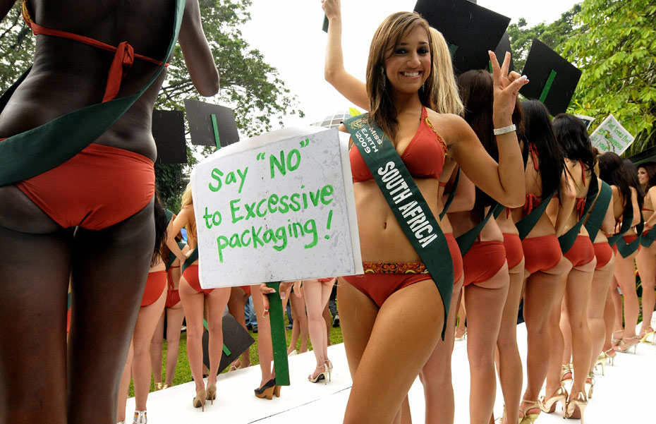 2009世界綠色環(huán)保大使小姐決賽在菲律賓進行,來自世界各地的90名佳麗參與角逐。世界綠色環(huán)保大使(地球小姐)評選,是全世界唯一以“綠色環(huán)!睘橹黝}注冊的國際頂級權(quán)威大賽,由菲律賓總統(tǒng)阿羅約創(chuàng)始。圖片來源:中國新聞網(wǎng)