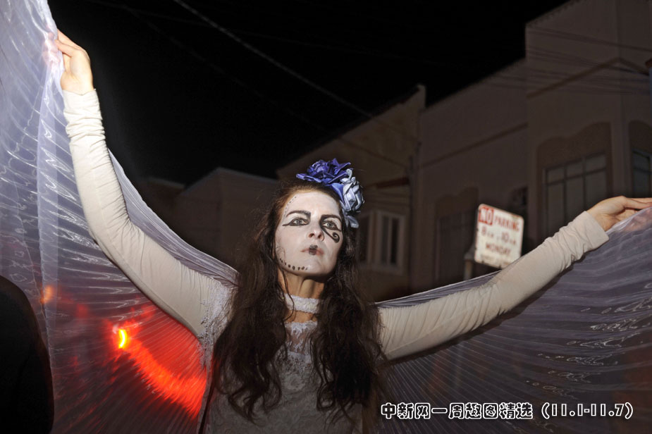 11月2日,美國舊金山居民扮成鬼怪模樣慶!巴鲮`節(jié)”。>>點擊觀看詳細(xì)內(nèi)容