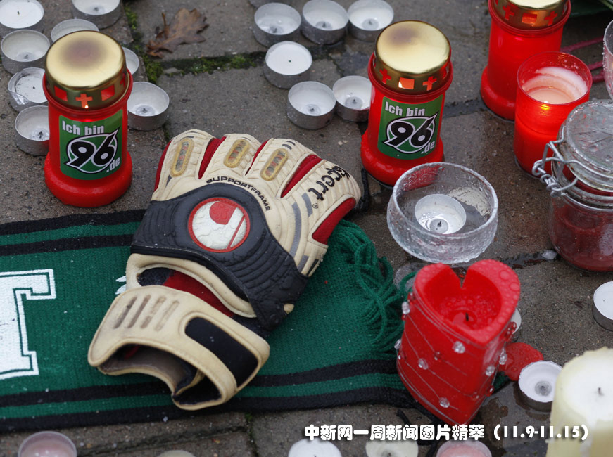 11日(周三),德國球迷紀念10日與火車相撞自殺身亡的德國男足門將恩克。圖片來源:中國新聞網(wǎng)
