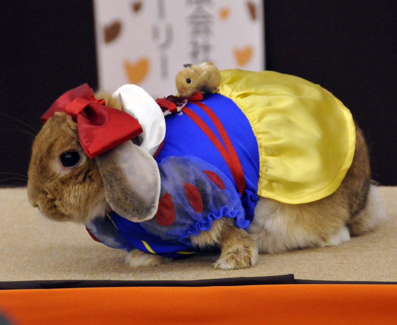 11月15日,在日本舉行了一場(chǎng)兔子時(shí)裝大賽,眾多愛好者把自己的兔子打扮的時(shí)髦靚麗前來參賽。
