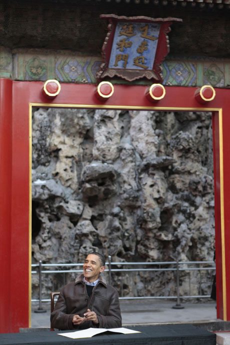 11月17日,正在中國(guó)進(jìn)行國(guó)事訪問的美國(guó)總統(tǒng)奧巴馬一行參觀北京故宮。