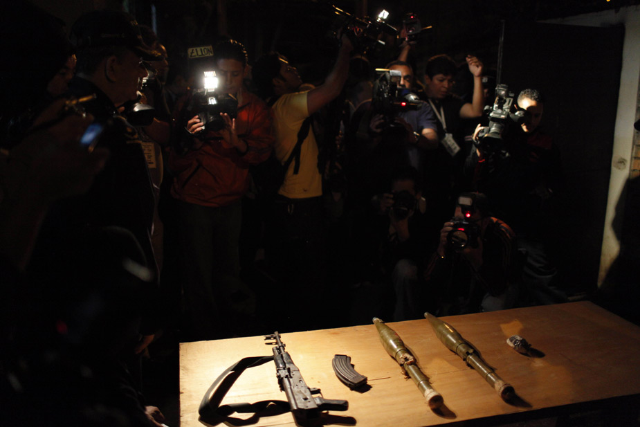 11月28日,洪都拉斯警察在首都特古西加爾巴搗毀了一座秘密武器庫(kù)。圖片來源:中國(guó)新聞網(wǎng)