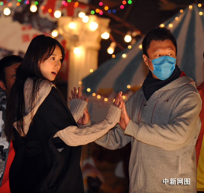 29日,由新銳導(dǎo)演李蔚然執(zhí)導(dǎo),孫紅雷、林志玲和甘薇領(lǐng)銜主演的西部奪寶喜劇大片《決戰(zhàn)剎馬鎮(zhèn)》在京郊組織了媒體探班,當(dāng)日拍攝的戲份是全片的最為精彩的重頭戲之一,整個(gè)片場(chǎng)喜氣洋洋,全劇組演員齊上陣,整個(gè)現(xiàn)場(chǎng)呈現(xiàn)一片舞蹈的海洋。其中林志玲和孫紅雷在這場(chǎng)大戲中大秀舞技,成為全場(chǎng)亮點(diǎn)。圖為在彩排現(xiàn)場(chǎng),一向以硬漢示人的孫紅雷為了預(yù)防流感戴上了口罩。中新網(wǎng)記者 金碩 攝