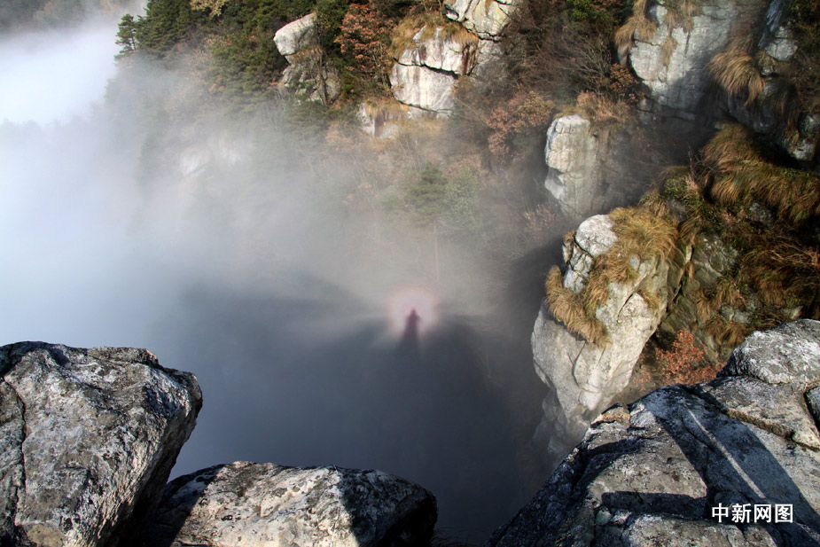 11月29日,受北方弱冷空氣影響,廬山出現(xiàn)平流云、佛光奇觀,佛光持續(xù)了近二個多小時。胡國林 攝 圖片來源:中國新聞網(wǎng)
