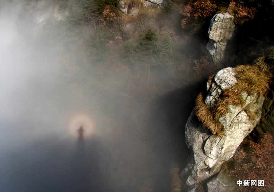 11月29日,受北方弱冷空氣影響,廬山出現(xiàn)平流云、佛光奇觀,佛光持續(xù)了近二個多小時。胡國林 攝 圖片來源:中國新聞網(wǎng)