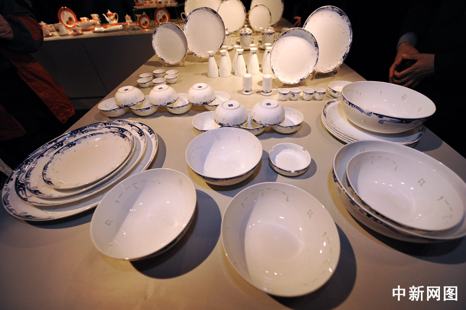 圖為現(xiàn)場(chǎng)展示的景德鎮(zhèn)精品陶瓷作品。中新網(wǎng)記者 金碩 攝