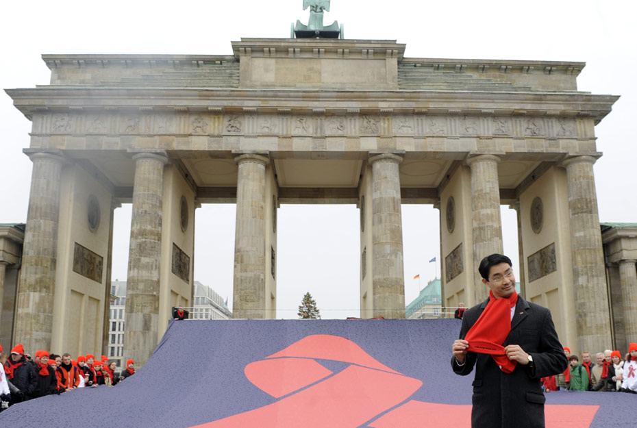 11月30日,德國衛(wèi)生部長在為艾滋病日做宣傳。12月1日是世界艾滋病日,2009年世界艾滋病日的主題是“普遍可及和人權(quán)”。世界各地民眾組織各種活動呼吁人們關(guān)注艾滋病。圖片來源:中國新聞網(wǎng)