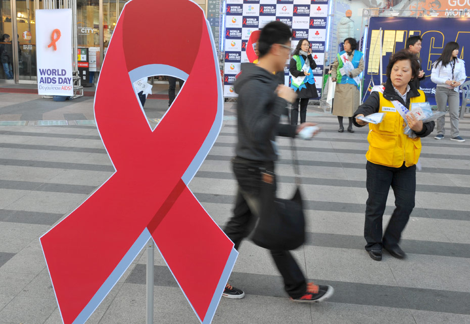 11月30日,韓國首爾,紅十字會工作人員在街頭放置紅絲帶標識宣傳世界艾滋病日。12月1日是世界艾滋病日,2009年世界艾滋病日的主題是“普遍可及和人權”。世界各地民眾組織各種活動呼吁人們關注艾滋病。圖片來源:中國新聞網(wǎng)
