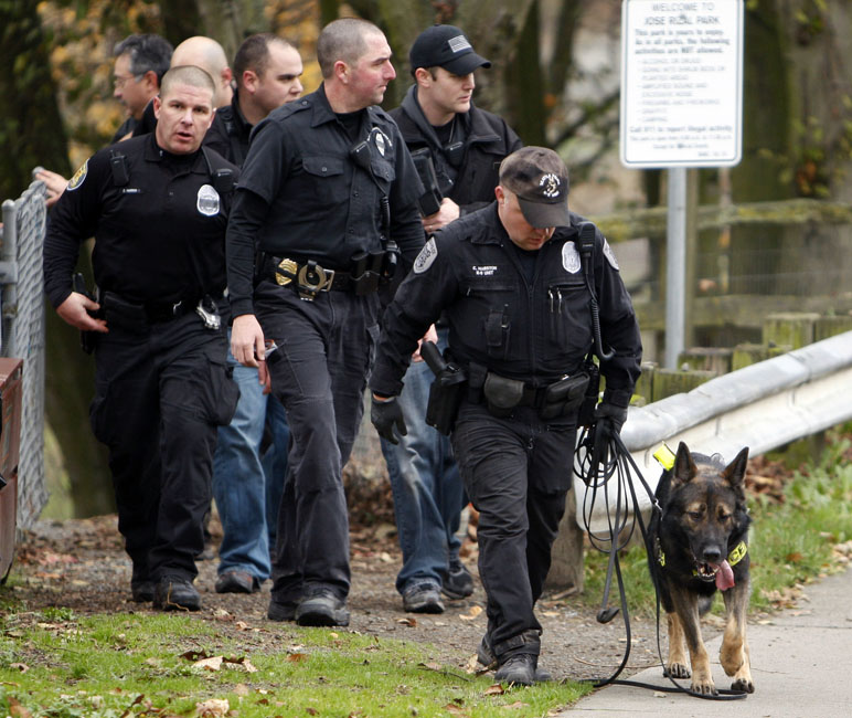 11月29日,美國4名警察在華盛頓州空軍基地附近一間咖啡館被兩名槍手槍擊,4人當(dāng)場死亡。美國軍方派遣反恐特警小組展開大規(guī)模追查。圖片來源:中國新聞網(wǎng)