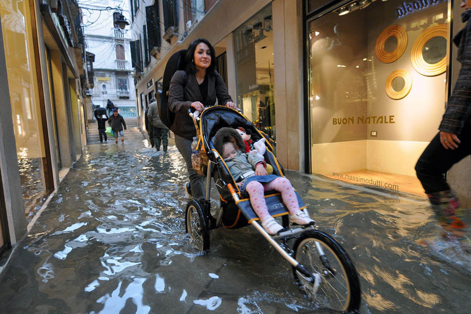 11月30日,意大利水城威尼斯受潮汐和一股強烈的熱帶風暴影響再次被洪水淹沒,部分地區(qū)最高水位達到1.31米。圖片來源:中國新聞網(wǎng)