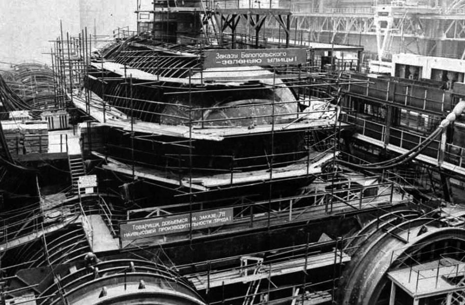 圖為建造中的“臺(tái)風(fēng)”級(jí)頂層耐壓殼體。圖片來(lái)源:人民網(wǎng)