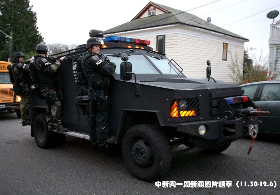 11月29日,美國4名警察在華盛頓州空軍基地附近一間咖啡館被兩名槍手槍擊,4人當(dāng)場死亡。美國軍方派遣反恐特警小組展開大規(guī)模追查。圖片來源:中國新聞網(wǎng)