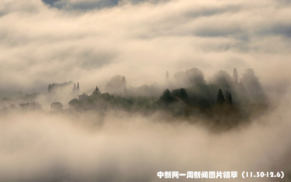 12月2日,大霧籠罩了意大利佩魯賈。圖片來(lái)源:中國(guó)新聞網(wǎng)