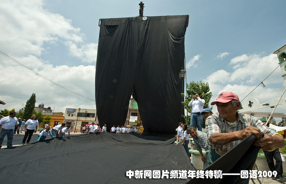 最長(zhǎng)的褲子:6月14日,墨西哥人在墨西哥州的阿爾莫洛亞展示一條60.1米長(zhǎng)的褲子,打破最長(zhǎng)褲子的吉尼斯世界紀(jì)錄。圖片來源:中國(guó)新聞網(wǎng)