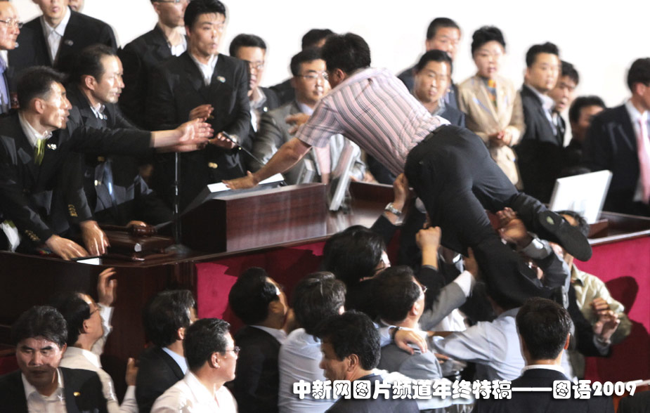 7月22日,韓國(guó)首爾議會(huì)上數(shù)百名議員發(fā)生沖突。