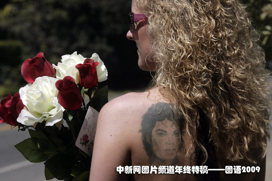 9月3日,流行天王邁克爾·杰克遜的私人葬禮在加州林茵紀(jì)念公園墓園舉行。一位歌迷前來(lái)送別。